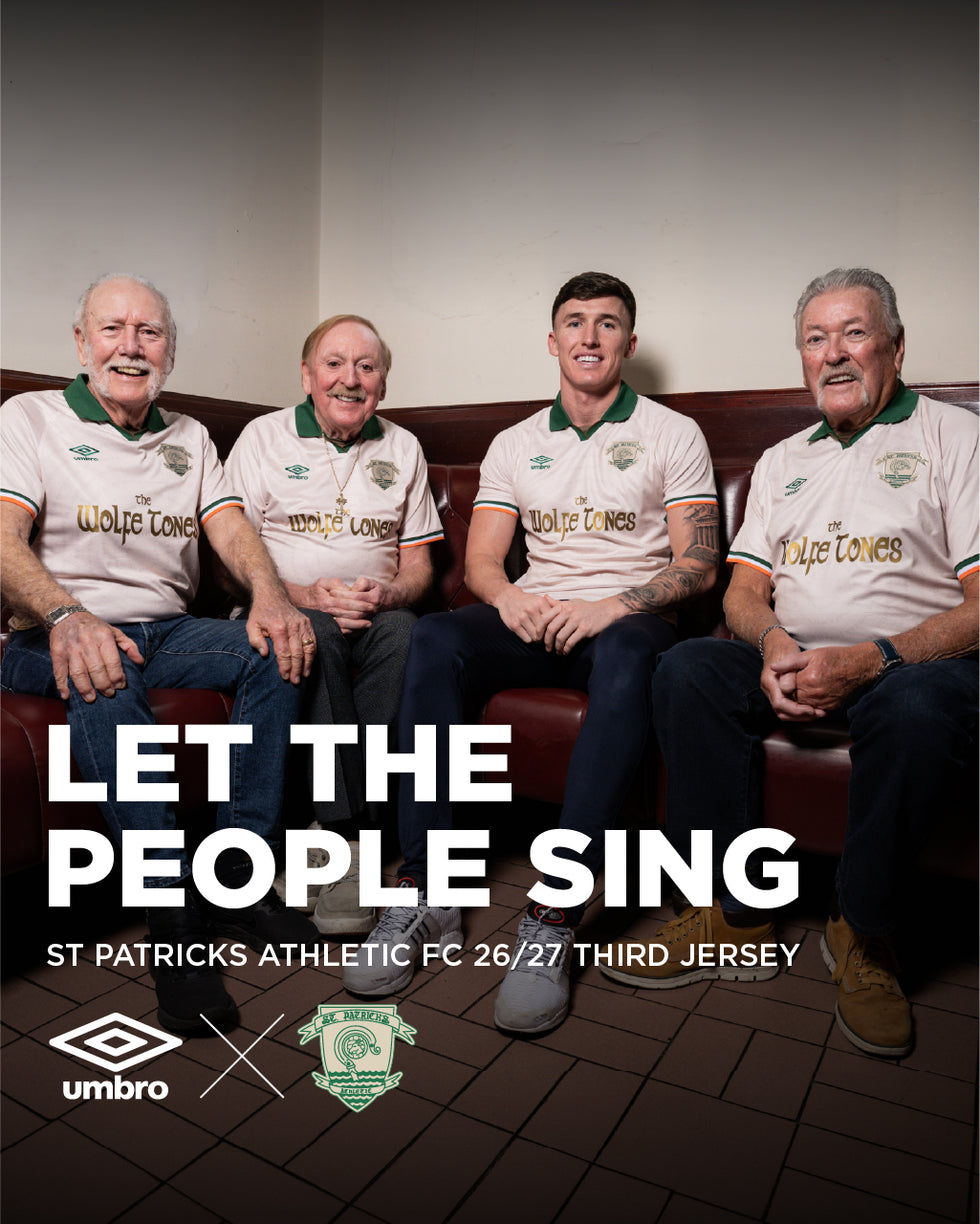 Shop the St. Patrick's Athletic 2026 Third Jersey featuring The Wolfe Tones collaboration.