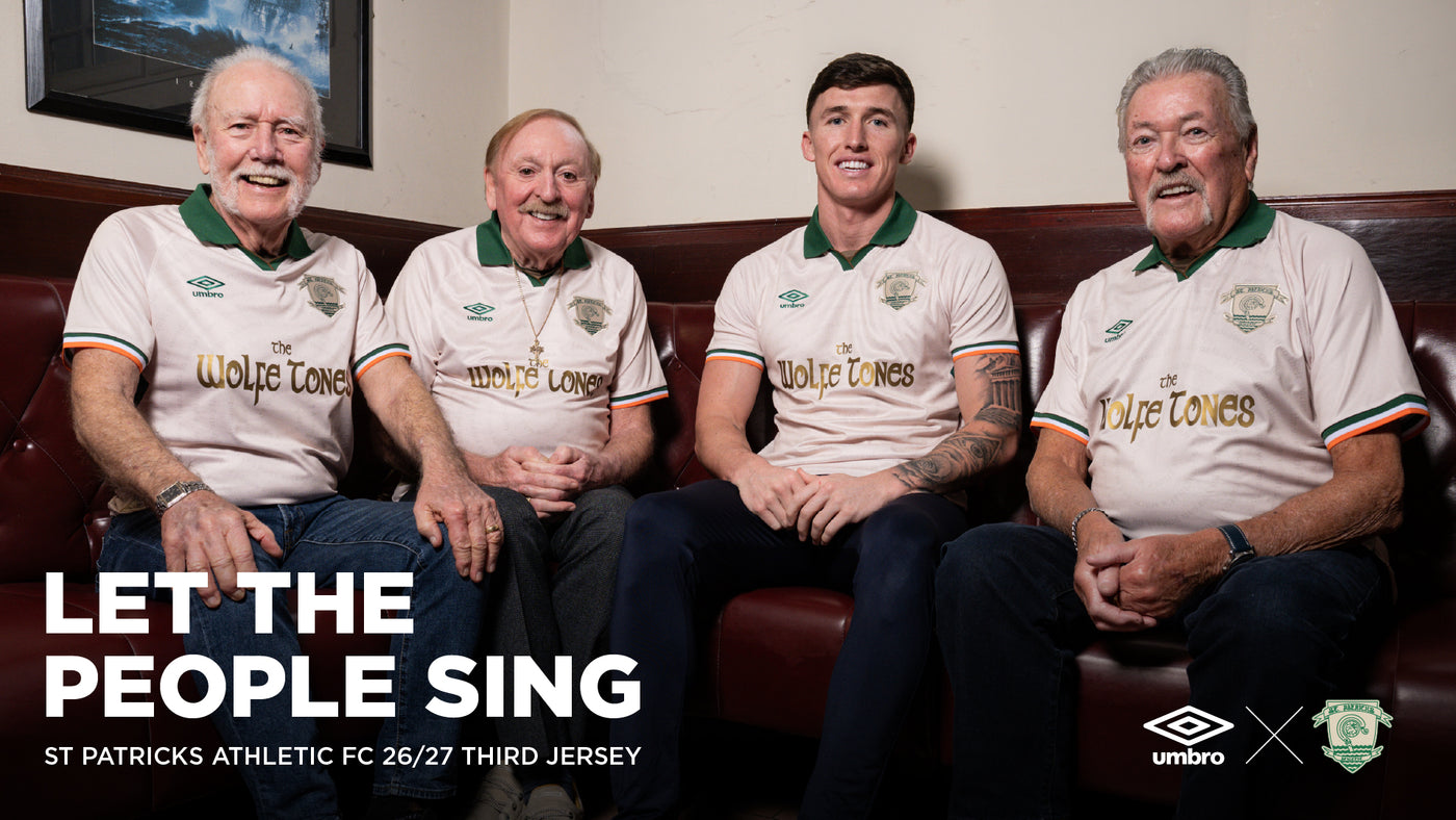 Shop the St. Patrick's Athletic 2026 Third Jersey featuring The Wolfe Tones collaboration.