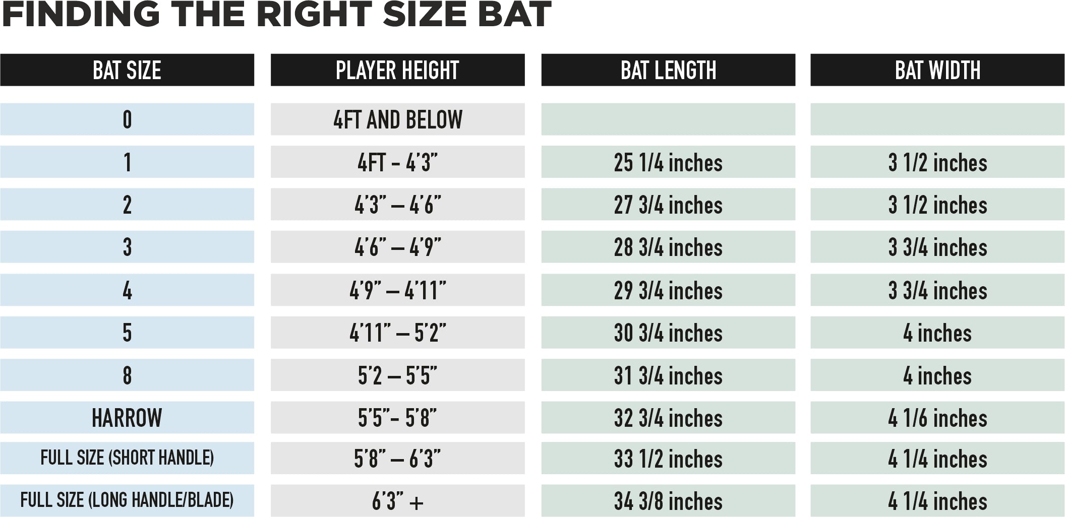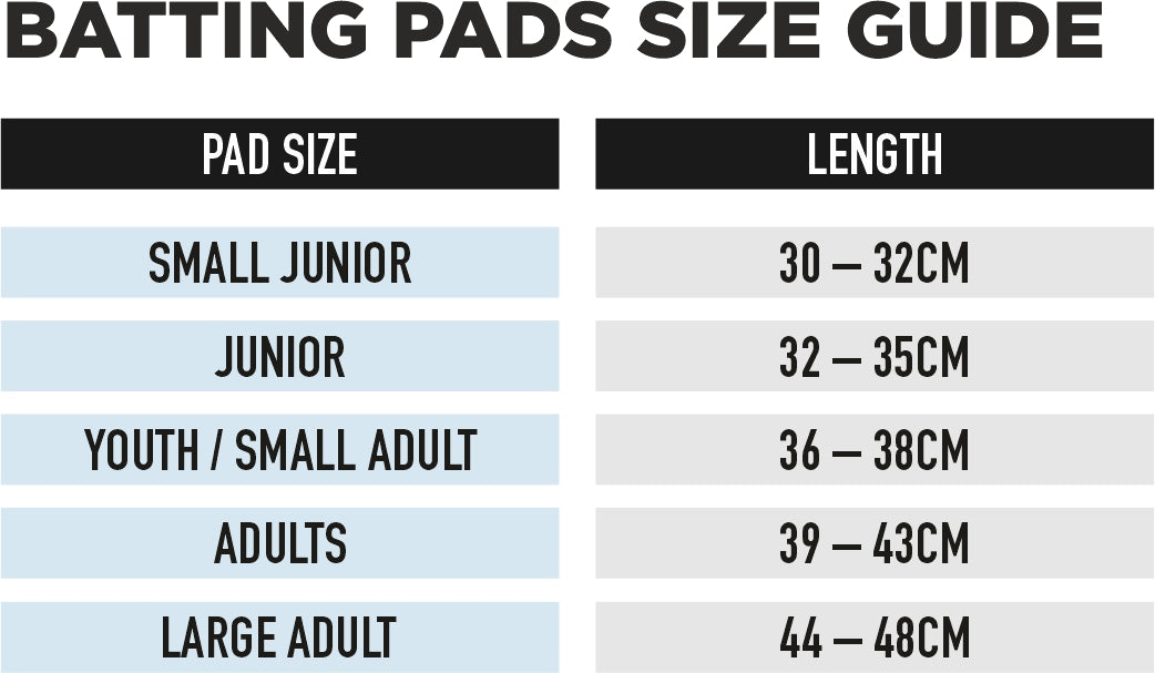 Batting pads size guide