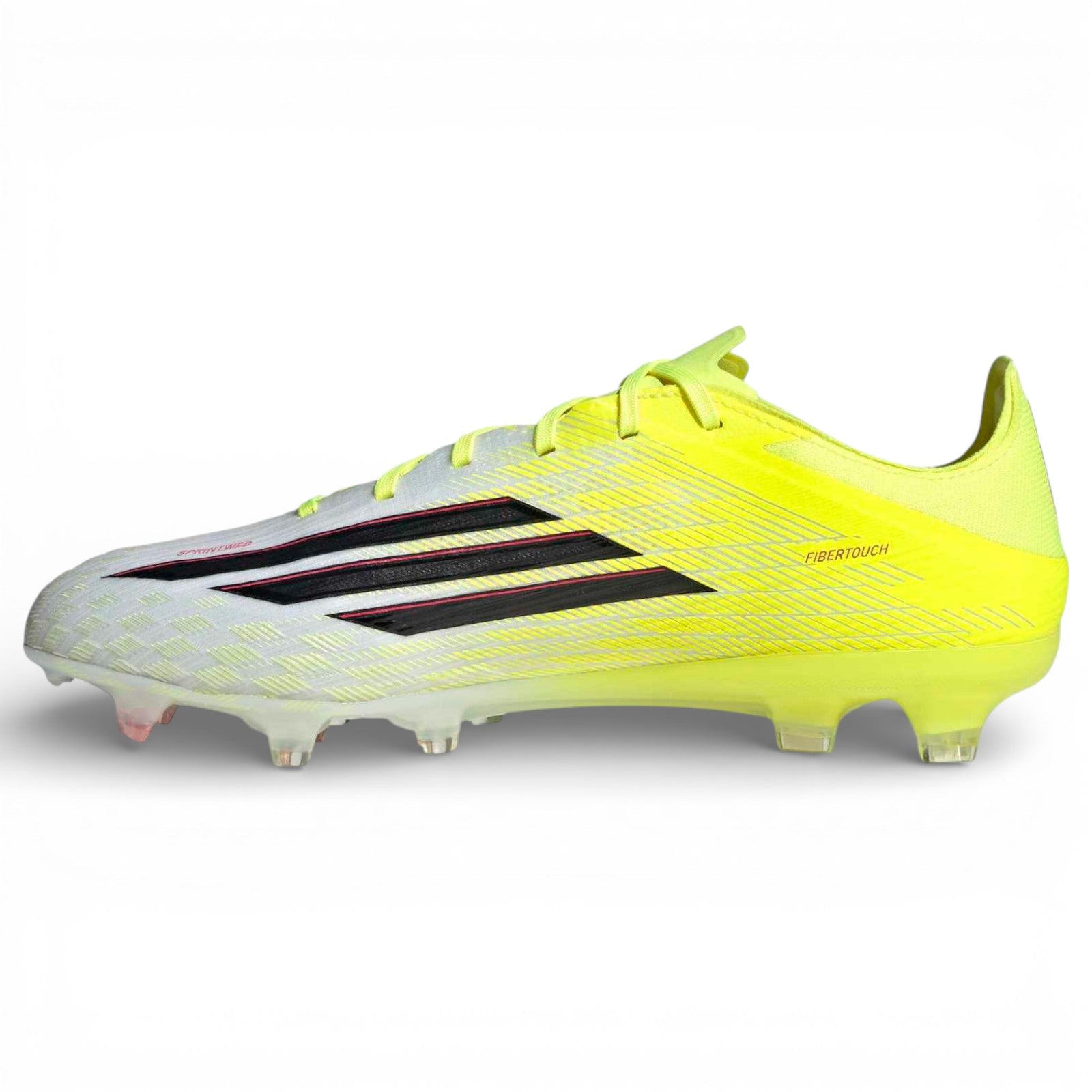 When it comes to football, speed on the pitch is crucial. The F50 Pro Firm Ground Football Boots are designed for game-changing speed and performance on the pitch. The Fibertouch upper offers lightweight support and cushioning and Sprintweb technology adds a high-definition 3D texture for added ball contact, especially when dribbling at high speeds. Including Sprintshell 360, high-performance tooling with an anatomically designed coring structure with a combination of bladed and semi-conical studs, for acceleration and speed in all directions. With stylish adidas branding and a regular fit, these boots are a must-have for football training on firm ground. Wear these boots to your next match to play in modern comfort.