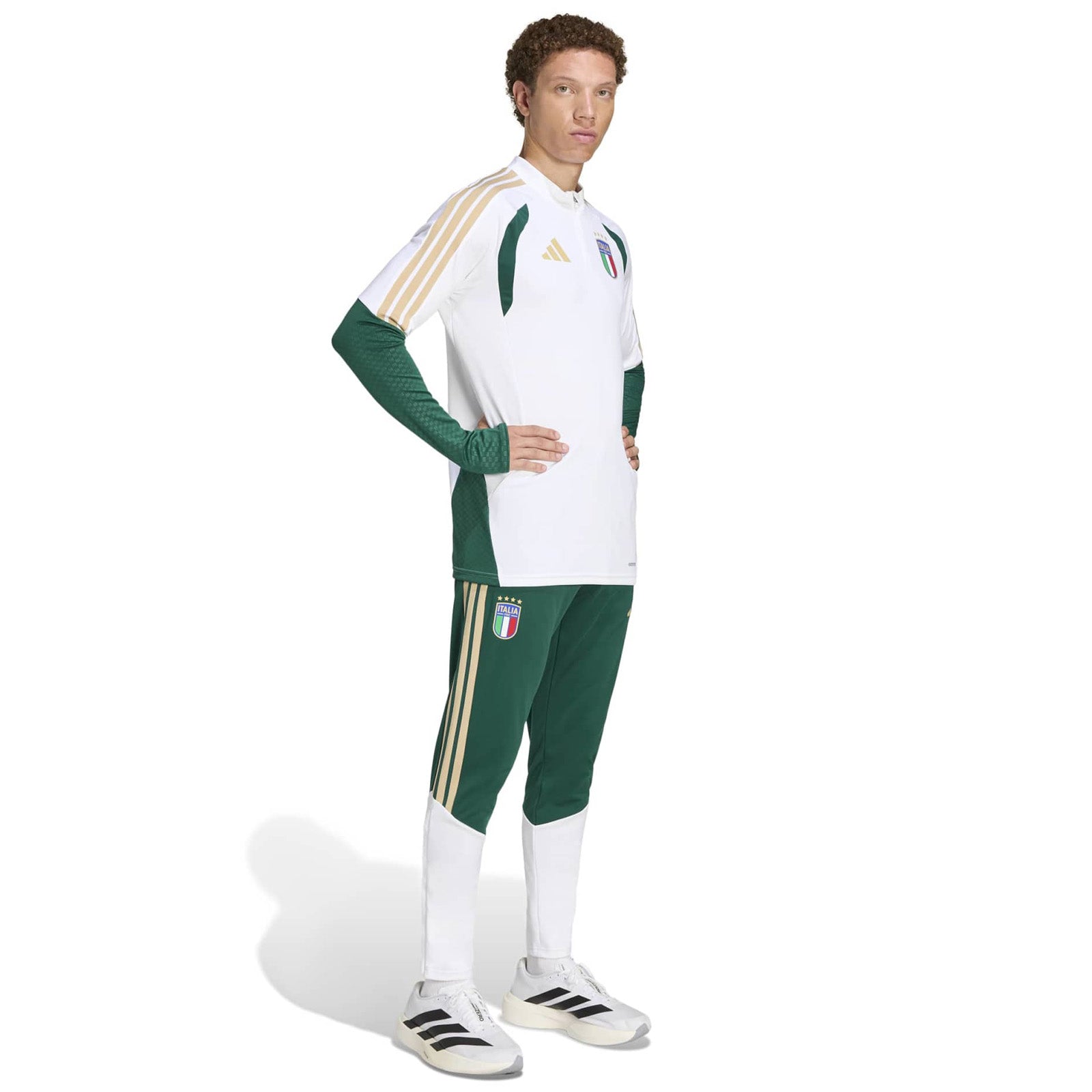 The adidas Italy 26 Tiro Training Top is crafted for fans of Italian football who live and breathe the beautiful game. Its collegiate green hue and sleek design look well presented even in the toughest training sessions. This top has been designed with mechanical stretch fabrics, with optimal performance, fit and comfort in mind. The striking mesh chest inserts boost ventilation to help keep you cool as you push your limits. Eye-catching embossed design elements on the arms and side inserts add a subtle touch of elegance, making this top both stylish and functional. Move freely with adidas Formotion technology, designed to free your movement, not restrict it. The front zip adds convenience, making it easy to slip on and off when warming up or cooling down. Whether you're on the pitch or off, this training top helps you dress to impress.