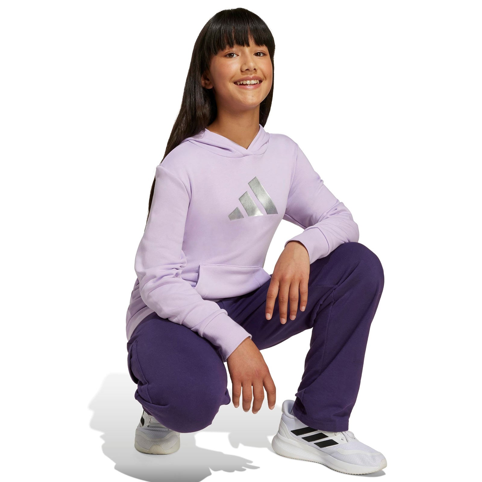 This juniors' adidas hoodie is made for days when you want to feel cosy but look put together. The cotton-blend French terry fabric is soft and comfortable, and the shiny graphic on the chest adds a touch of everyday glam. Whether you're meeting friends or just relaxing at home, this hoodie lets your style shine through.