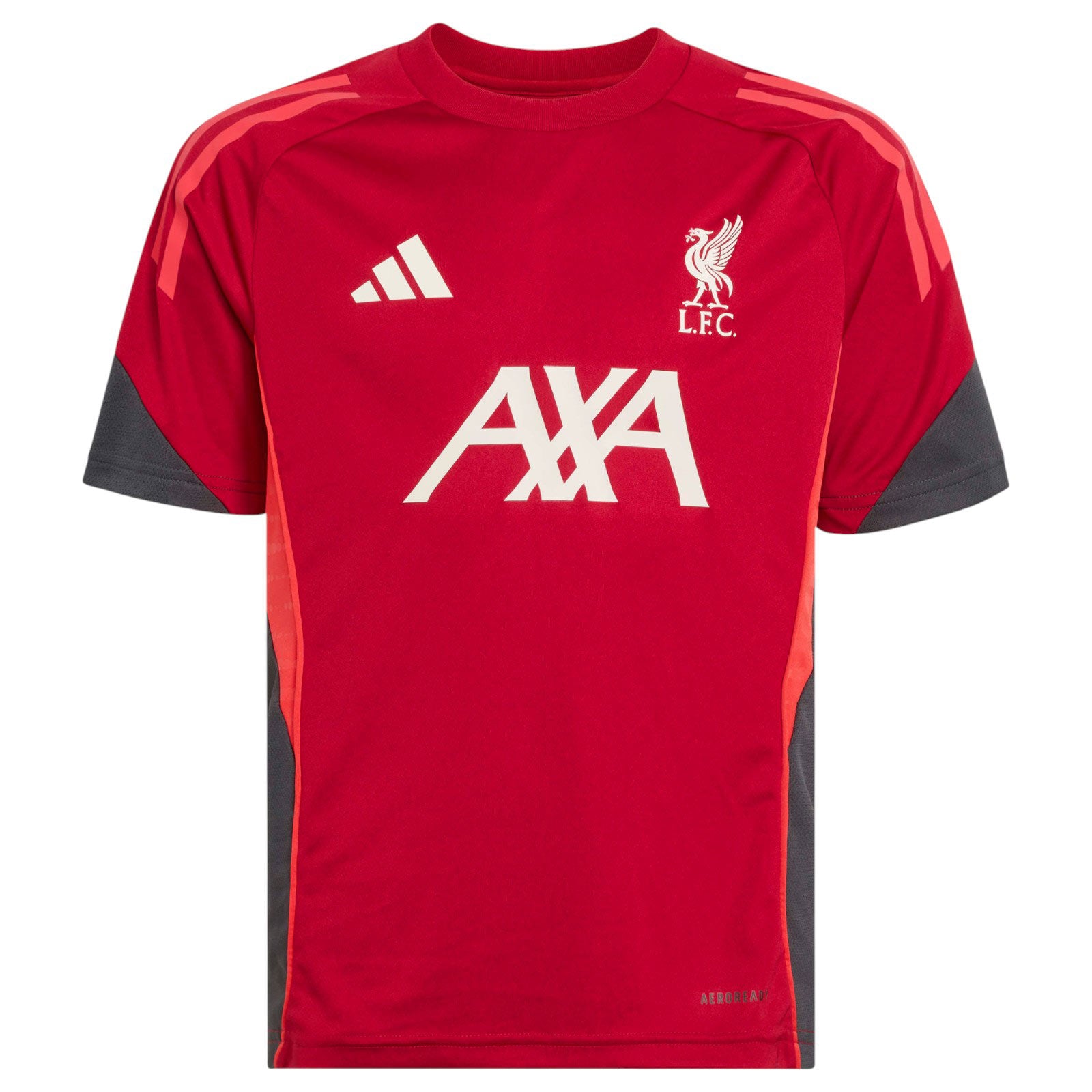Represent the Reds in style and comfort. Built to give the Liverpool FC squad the best possible preparation for league games, this juniors' adidas training jersey employs moisture-managing AEROREADY to help you put your all into improving. A heat-applied Liver Bird badge provides all the inspiration you need to let your football flow.