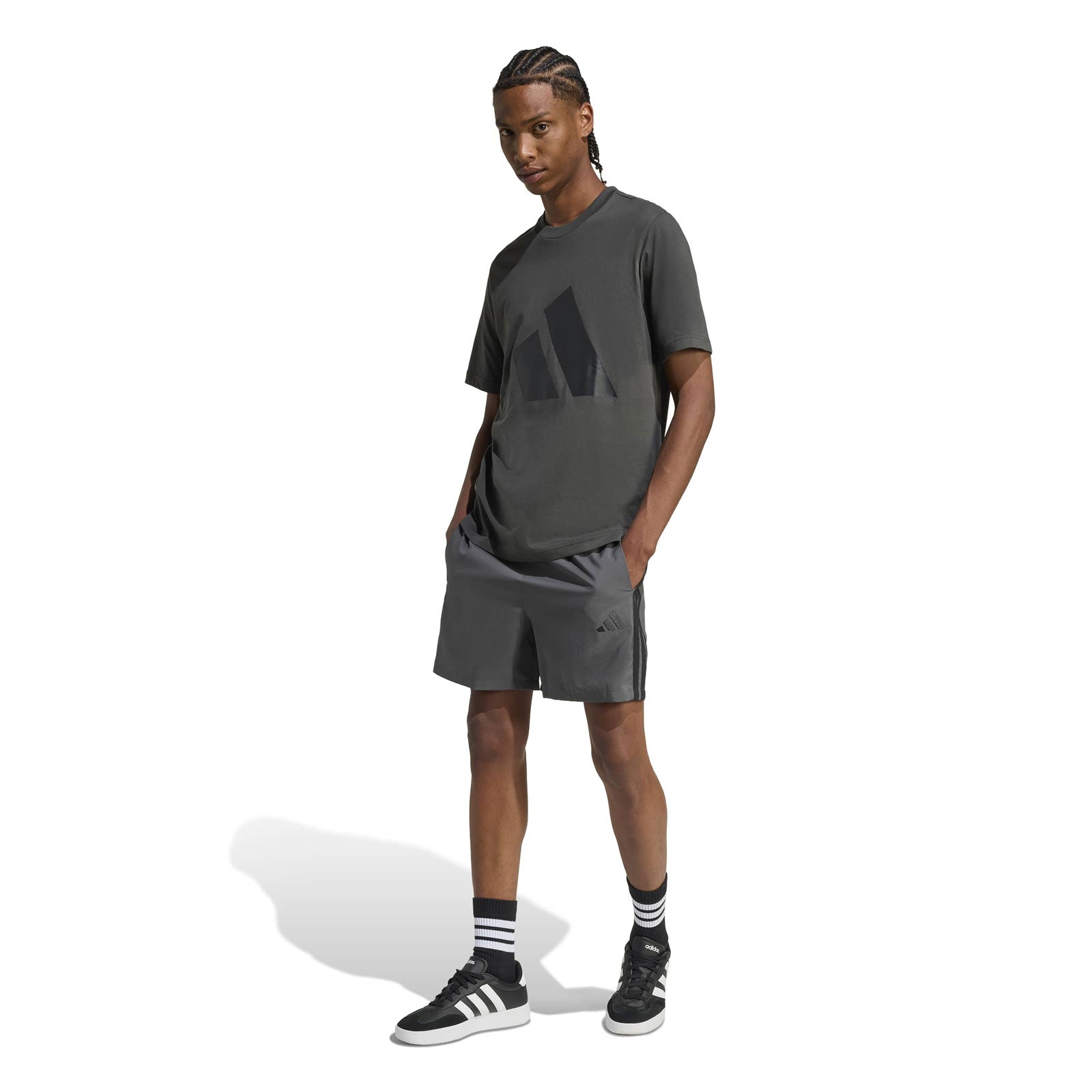 Clean lines meet modern style in these everyday shorts from adidas. Made from smooth woven fabric, they keep you comfortable whether you're kicking back or on the move. 3-Stripes down the sides add a sporty finish.
