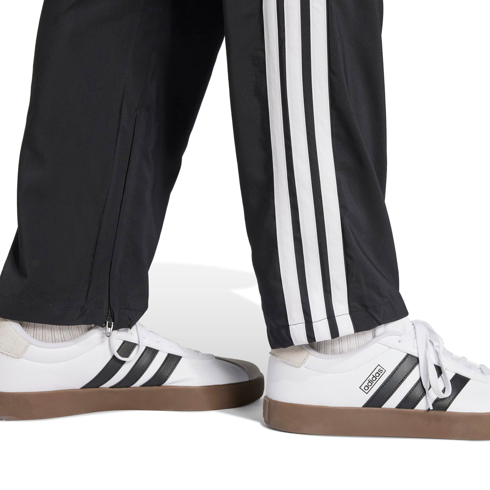 Clean, simple and versatile, these adidas pants are an essential addition to any wardrobe. Whether you're headed out for the day or sticking close to home, their soft build and open hems keep you comfortable. Signature 3-Stripes down the legs add a classic sporty touch. This product is made with 100% recycled materials. By reusing materials that have already been created, we help to reduce waste and our reliance on finite resources and reduce the footprint of the products we make.