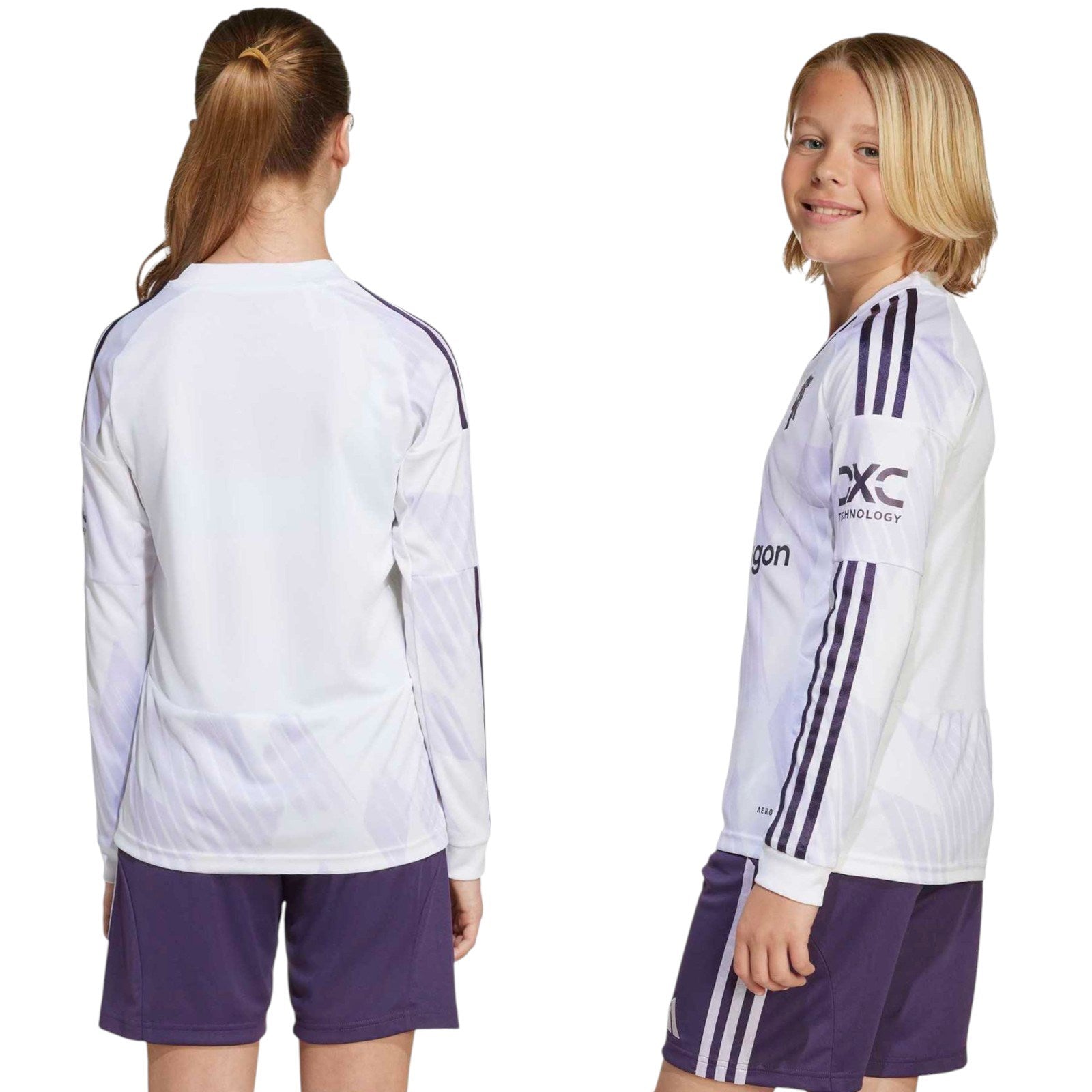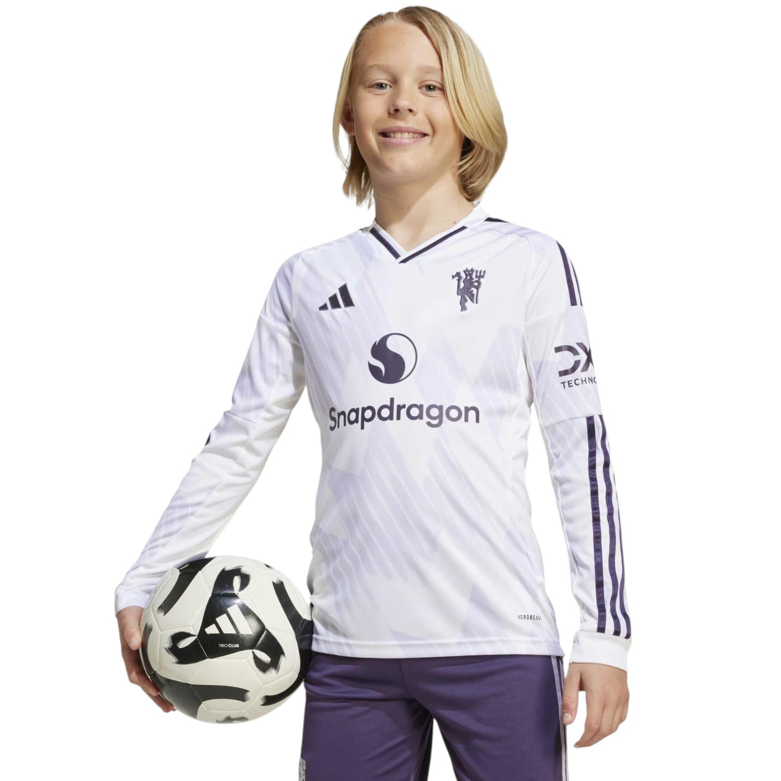 Ice-cold Manchester United style finds a fresh look. It won't take fans long to see the influence of the club's early-'90s adidas snowflake kit on this Juniors' Jersey. What are new, though, are those flashes of purple and lilac, and the metallic finish that gives the red devil badge extra lustre. This comfortable long sleeve shirt employs moisture-managing AEROREADY so fans can stay focused on the football.