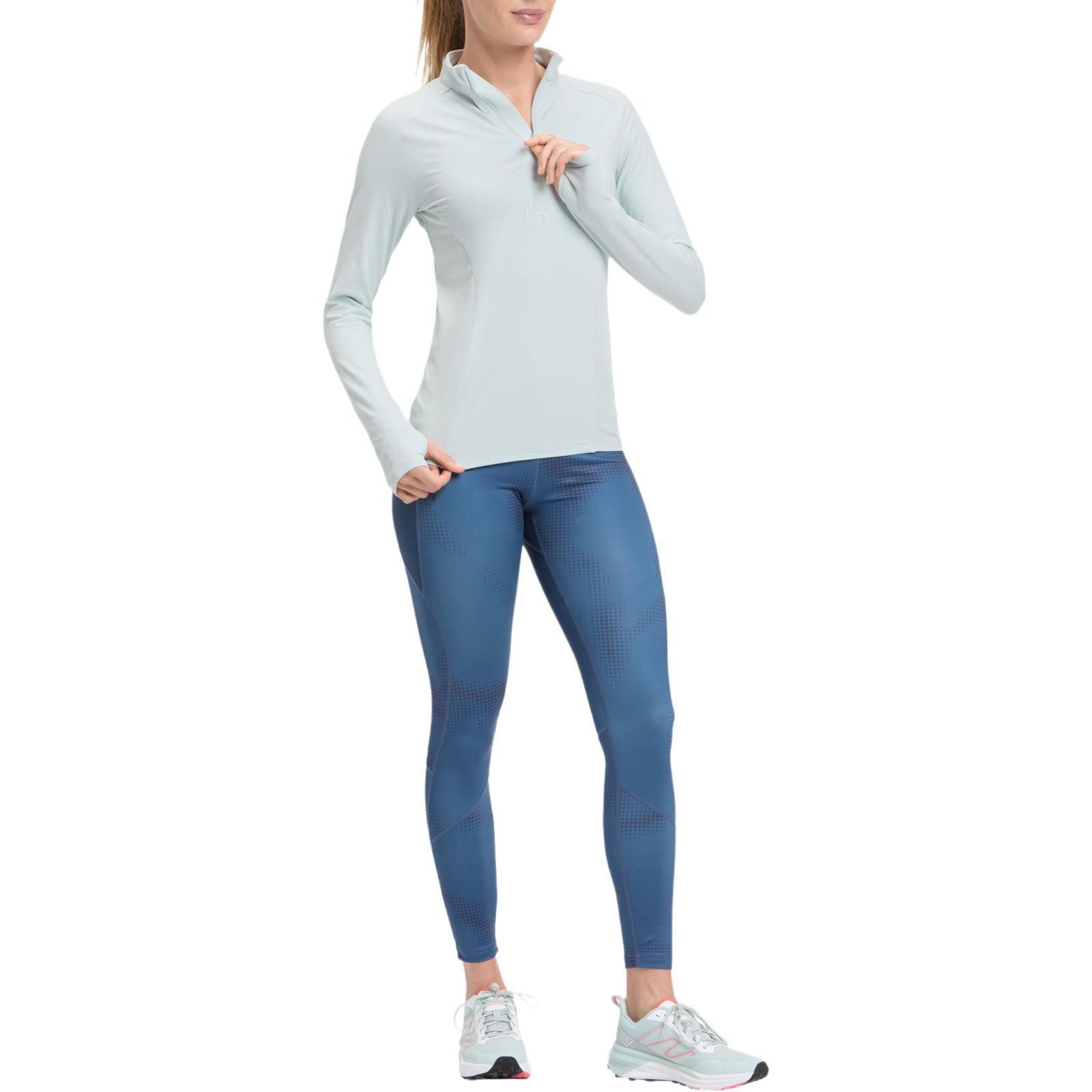 Ready to enhance your running experience? The energetics Cusca IV Womens Half-Zip Top is designed for both running and trail running. It efficiently wicks away moisture, keeping you dry and comfortable. The half-zip design offers adjustable ventilation, while the thumbholes at the cuffs provide extra warmth and coverage. Its regular fit and stretchable fabric offer a comfortable fit during your run.