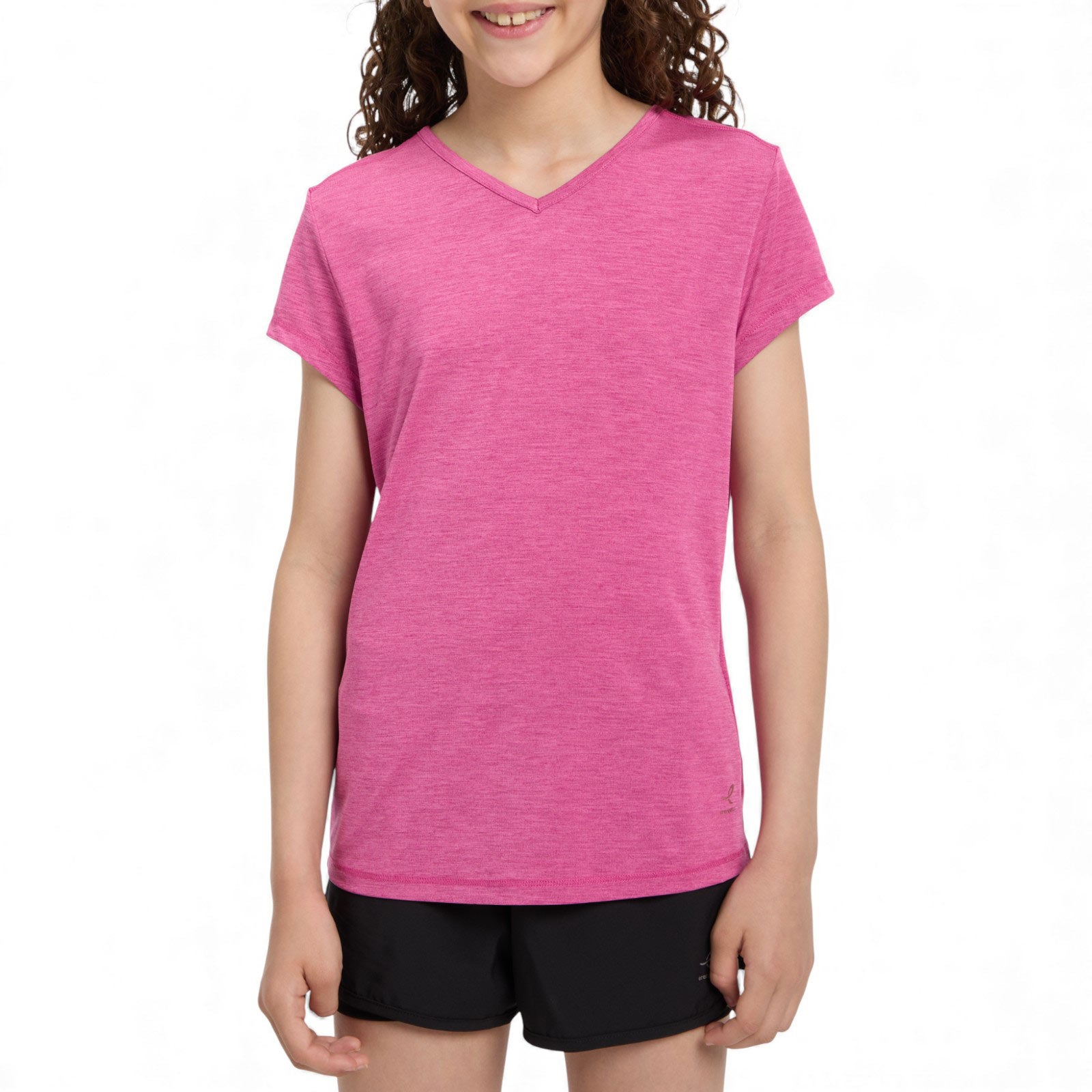 Looking for a workout tee for your girl? The energetics Gaminel 2 jrs offers comfort and performance. Designed for young athletes, this short-sleeved tee features flatlock seams to reduce irritation and a stretchable fabric that moves with her. It efficiently wicks moisture away, keeping her dry and comfortable during intensive fitness sessions. Regular fit and V-neck design.