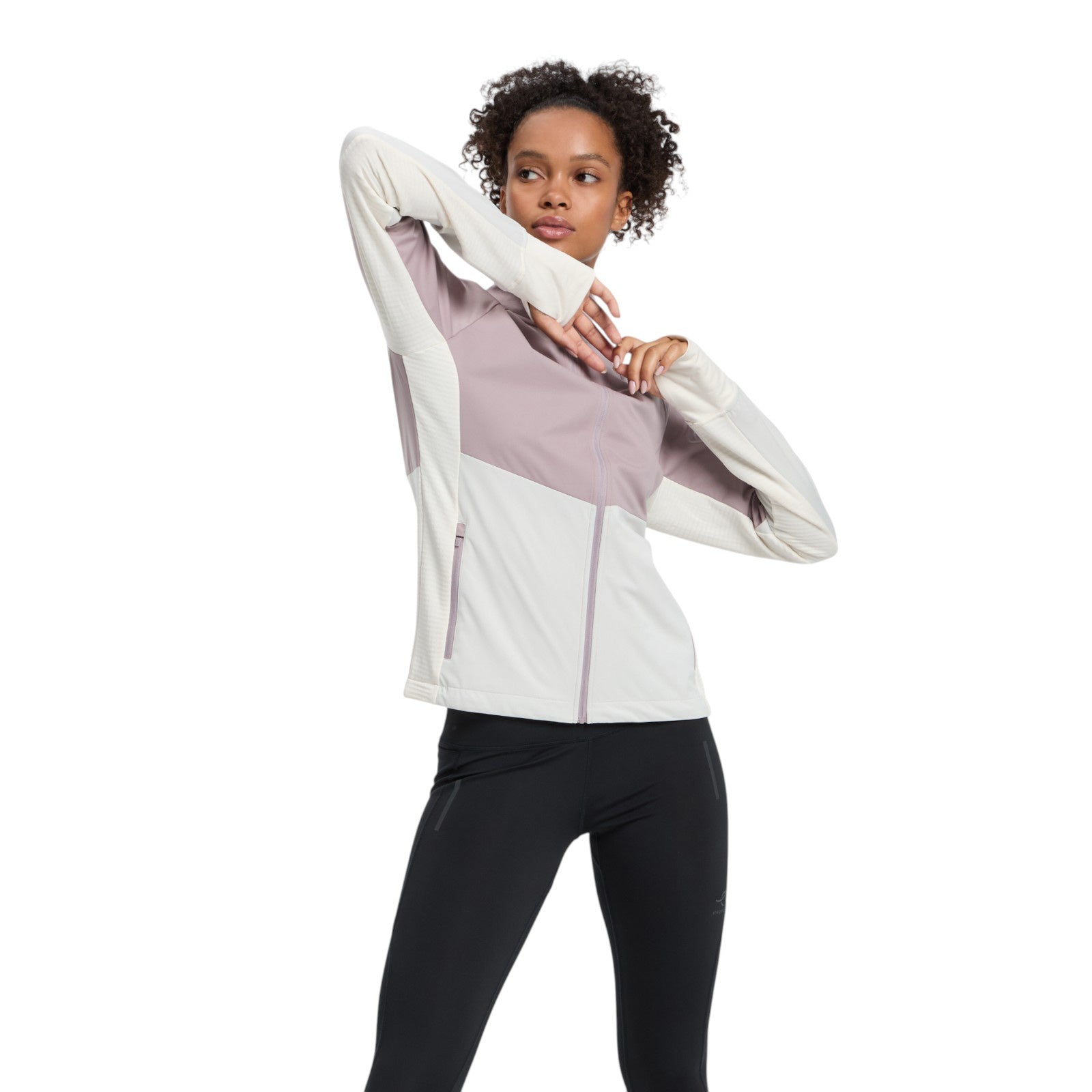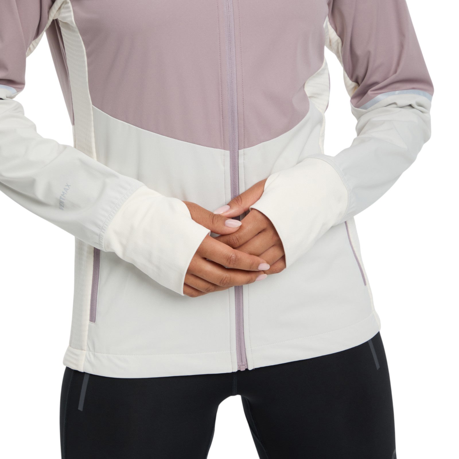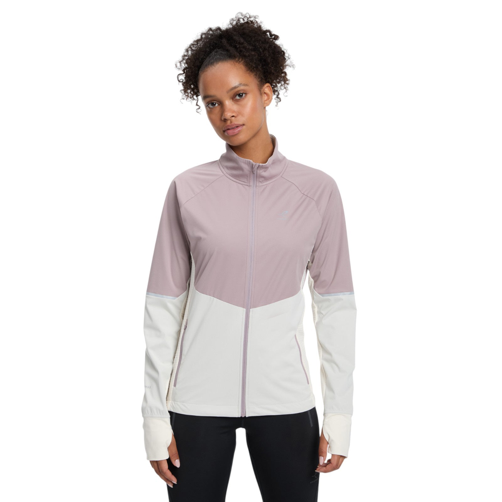 The full zip Semenya III W softshell running jacket from Energetics features both DRYPLUS® technology, which helps keep your body dry and comfortable during all outdoor activities by providing highly efficient moisture management, and VENTMAX® technology to support you in windy outdoor conditions. It has high breathability and waterproofing ratings, a higher collar for coverage, thumbhole cuffs and practical zip pockets at the back and side.