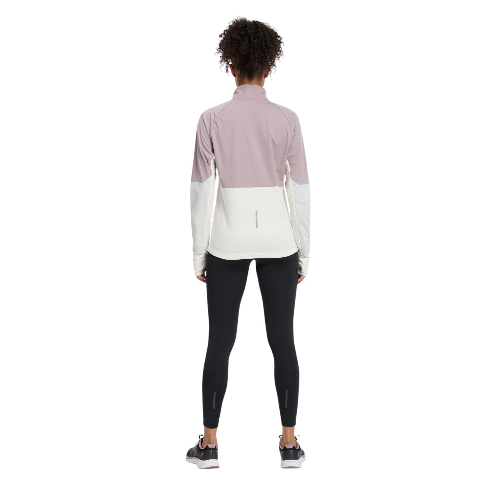 - Thumbholes at cuffs and zip pocket at the back