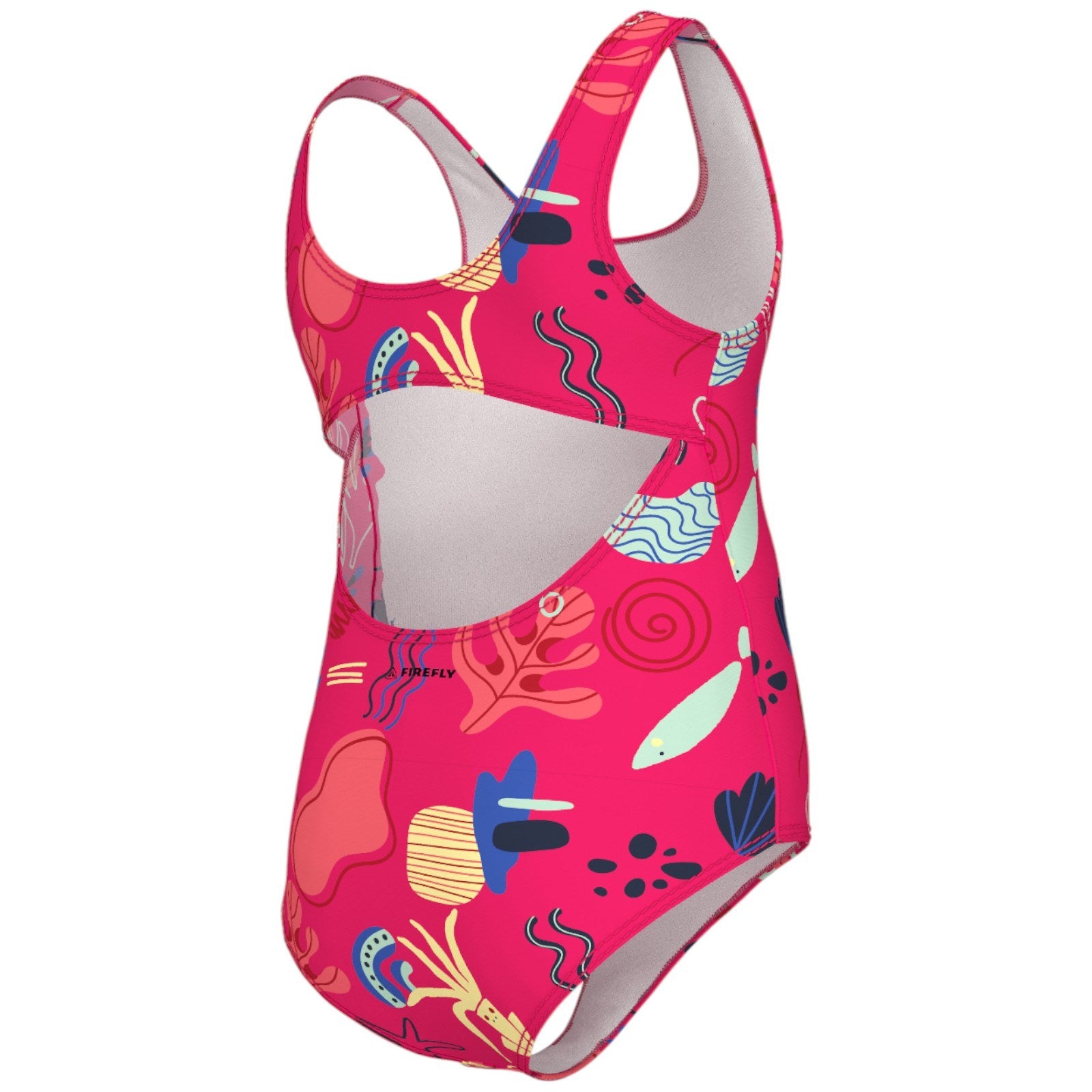 The Firefly BB Tori T 1-Piece Printed Swimsuit is made from a stretchable blend of fabrics to help keep kids comfortable and moving free in the water.