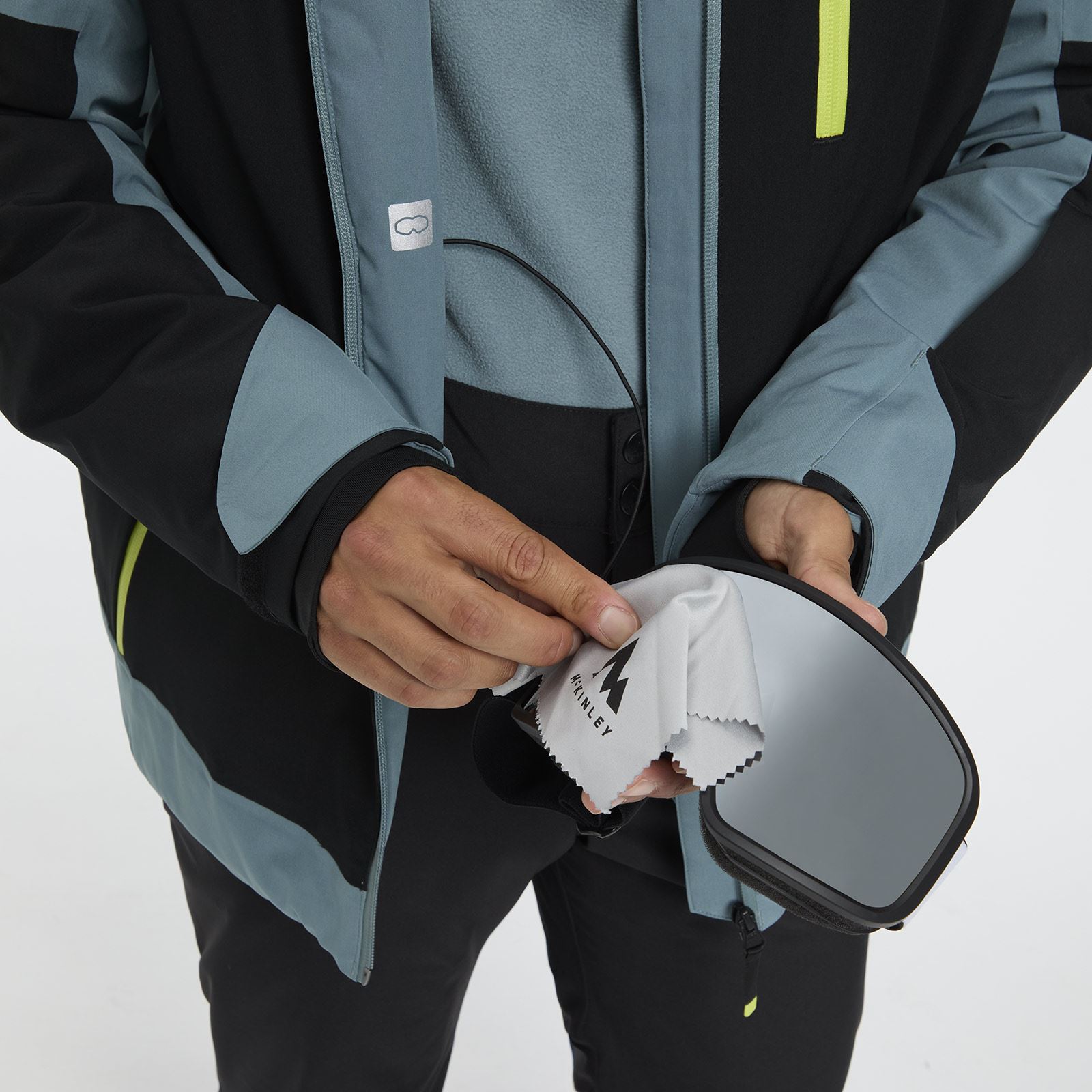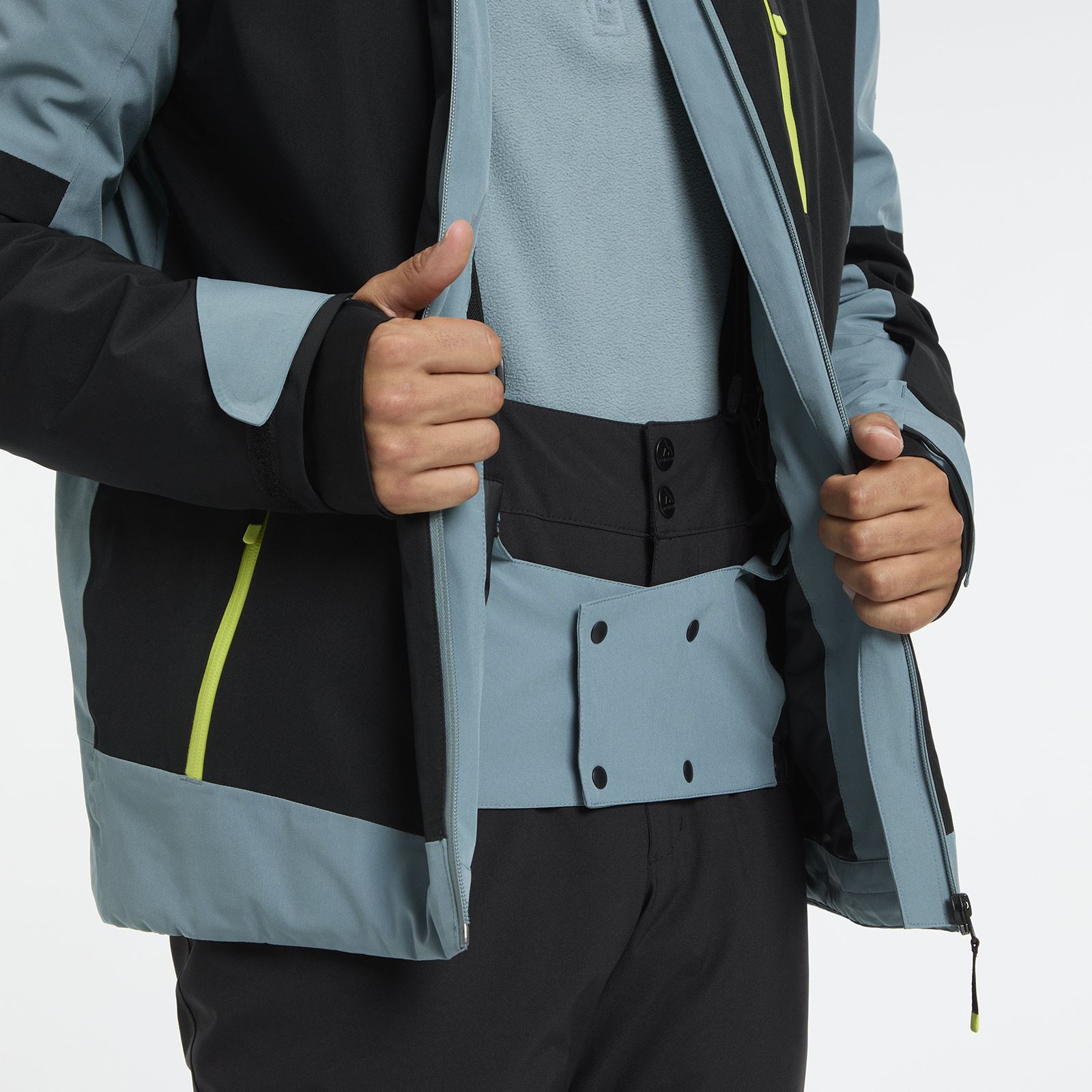 Designed to help keep you comfortable and moving freely on the slopes, the Fabian M full zip snow jacket from McKinley features AQUAMAX® technology and Primaloft® Black insulation as well as high breathability and waterproofness ratings. The front zip is water repellent, the adjustable hood zips off, the cuffs are adjustable and have inner thumbhole cuffs, and the adjustable hem has a detachable snowskirt. The entire jacket is fully taped with bonded details and has ventilation zips for greater temperature control and comfort as you ski.