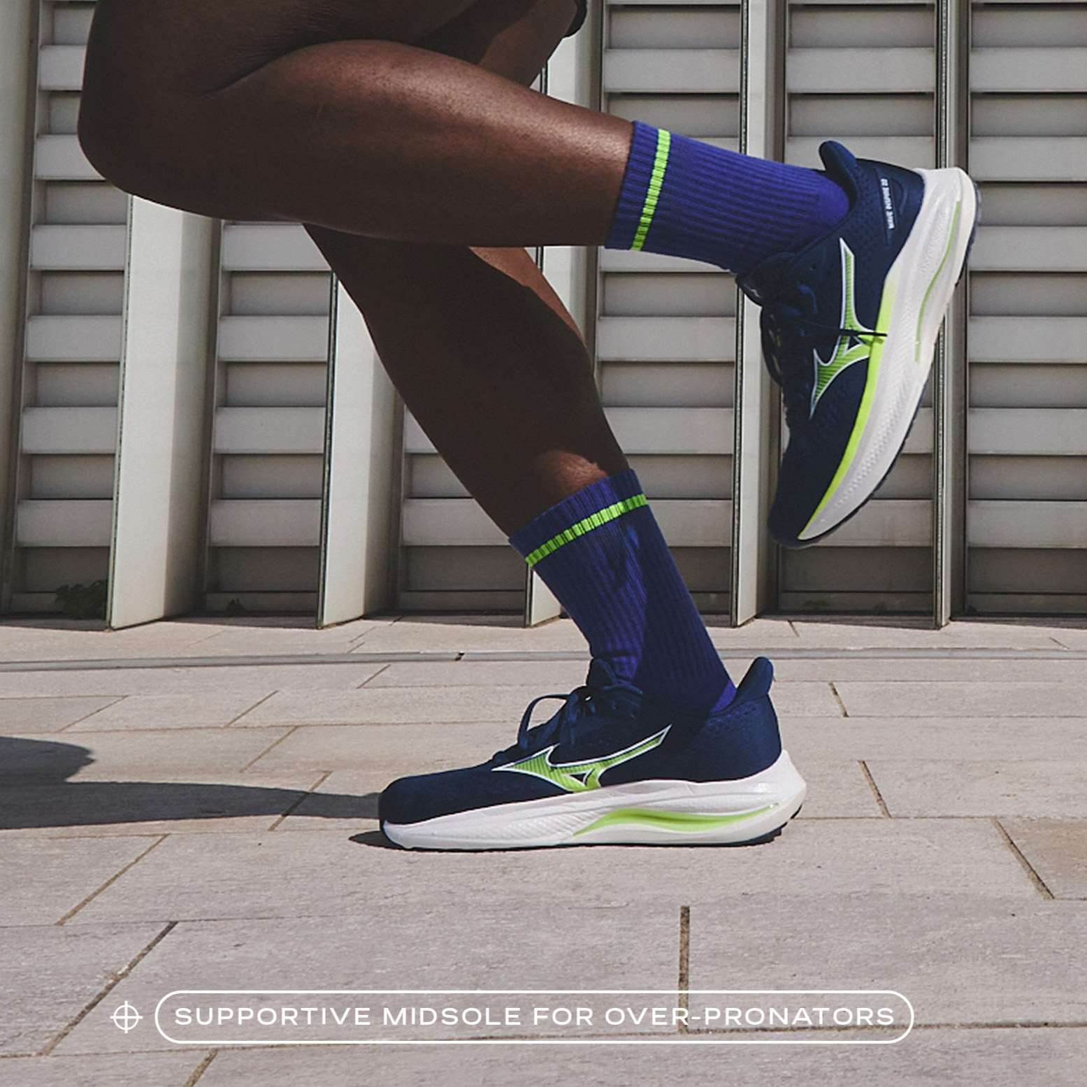 Wave shape designed for people with overpronation. The anatomical plate shape follows the shape of the foot for smooth weight transfer from ground contact to kick off.