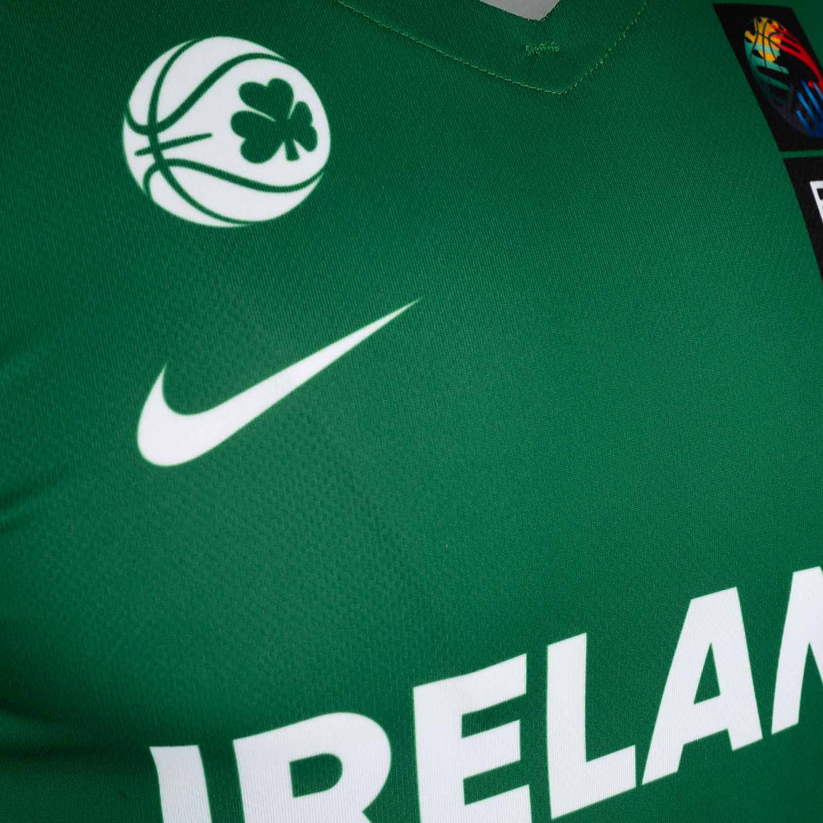 - Features the iconic Nike Swoosh alongside Basketball Ireland's logo, showcasing team pride