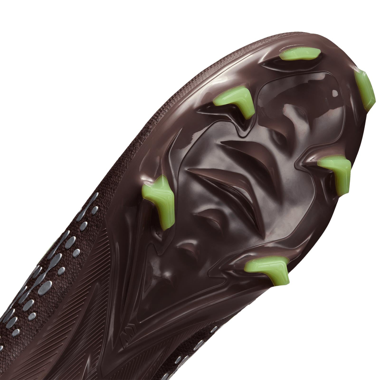 The wave-like traction pattern is a series of cascading studs, so it engages more surface area of the Air Zoom unit while also providing the appropriate amount of grip. The biggest stud is the same height as our traditional middle studs, so traction is not compromised. We paired the wave-like traction with evolved chevron and blade studs to help you stop when making quick cuts.