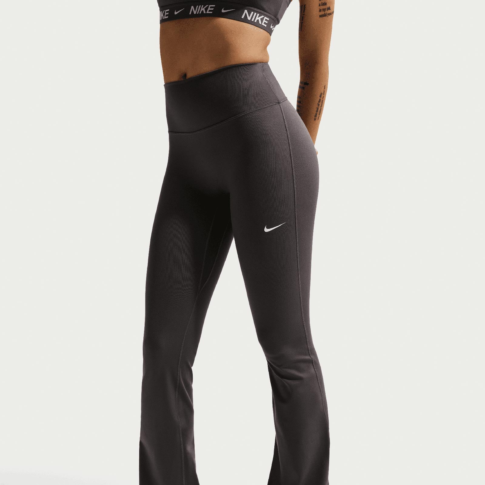 Nike One works for it all. These nonsheer flared leggings help keep you covered with midweight, peachy-soft fabric that stretches with your every move.