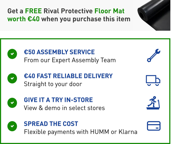 * Delivery Service (without assembly) to the Republic of Ireland for Home Gym equipment costs €20, select items incur a delivery charge of €40 due to oversized dimensions.