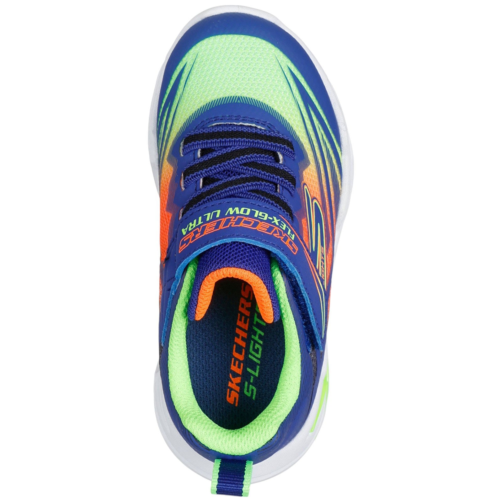 Rev up their day with the bright fun of Skechers S-Lights®: Flex-Glow Ultra. This colorful sneaker features an ombre mesh upper with synthetic overlays, fixed stretch laces and Adaptive Closure, plus a tech-pieced light-up midsole.