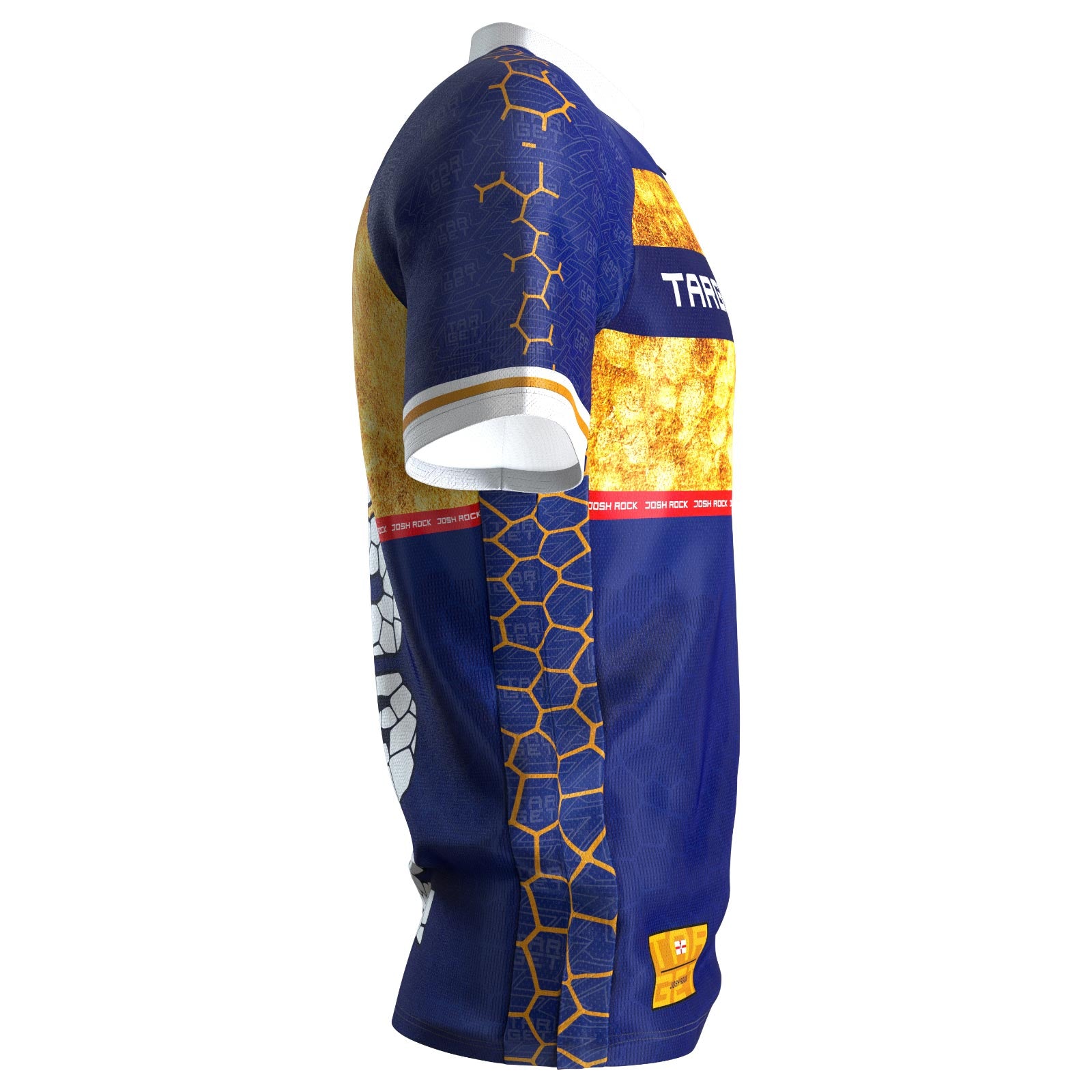 The signature blue base is accented with a vibrant golden honeycomb pattern and features the player’s nickname, "ROCKY".