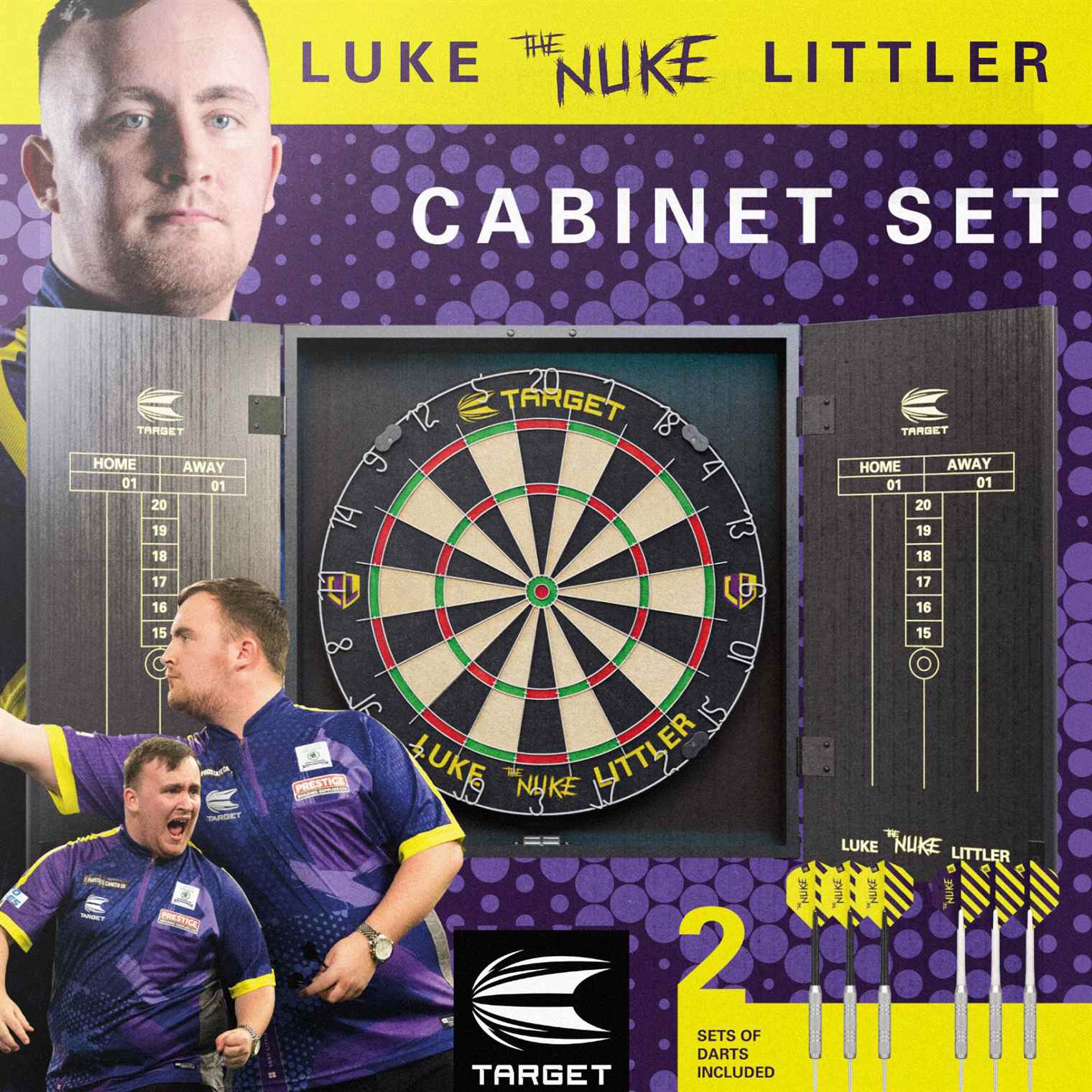 Introducing the Luke Littler Dartboard Cabinet Set, a collaboration with the renowned darting sensation, "The Nuke".