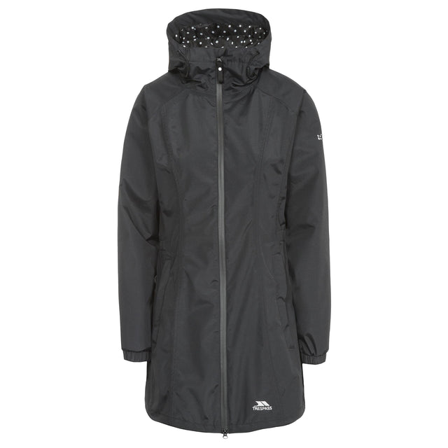 Stay dry and stylish with the Trespass Women’s Daytrip Lightweight Waterproof Jacket. Crafted with a TP50-rated waterproof shell, taped seams, and elastic sides, it offers reliable protection against wind and rain. The grown-on hood and elastic cuffs provide extra comfort and shielding from the elements, while the back hem tie allows for a personalised fit. Two zip pockets keep your essentials secure, and the printed lining adds a touch of style to this versatile, longer parka-length jacket. Perfect for outdoor adventures or everyday wear, it combines functionality, comfort, and fashion in one jacket.