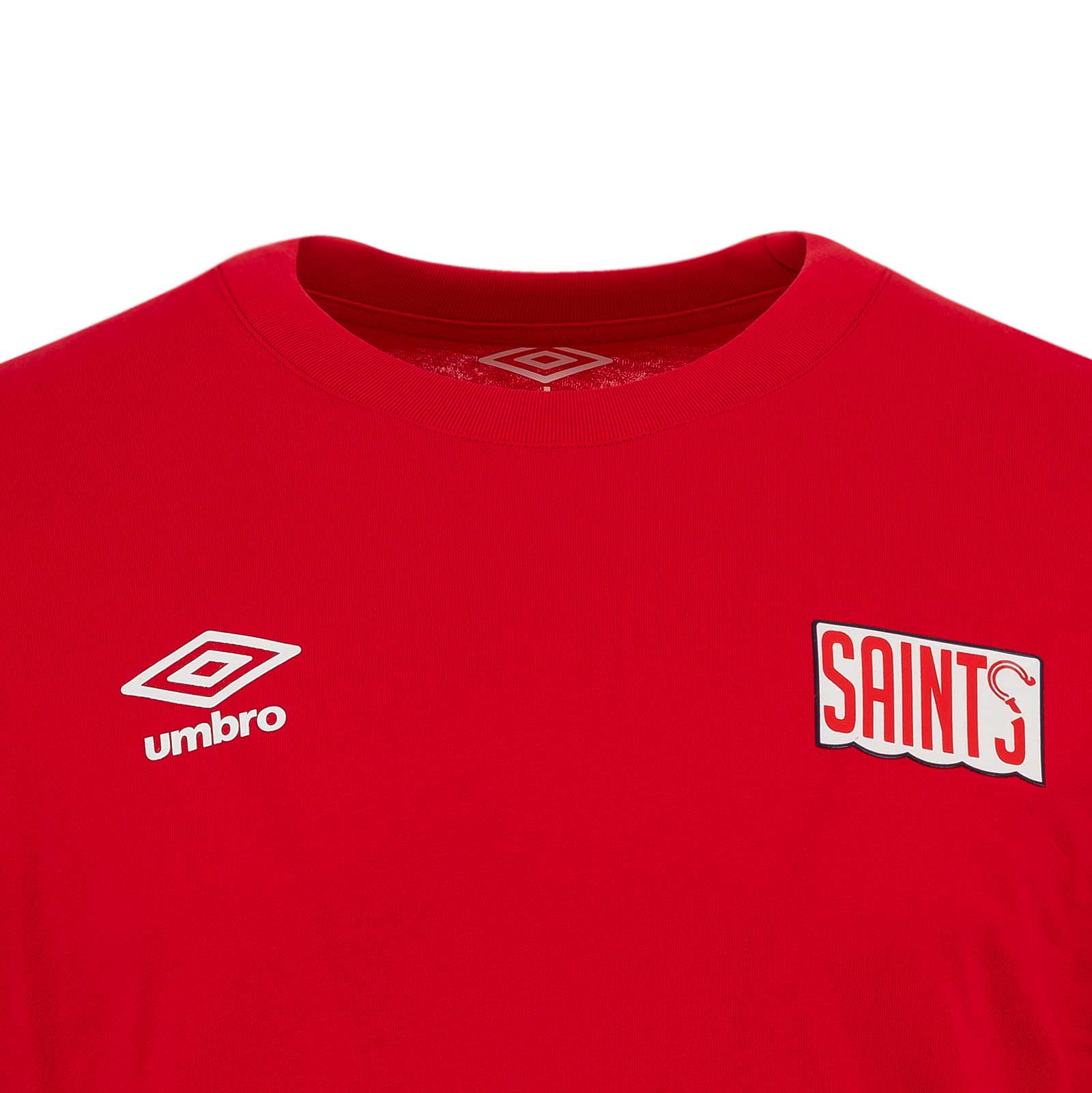 The t-shirt features the Saints crest, making it instantly recognisable to fans. Made from durable material, the top is designed to provide maximum comfort and durability during training or gameplay. The fabric keeps the player dry and cool even during intense physical activity. The t-shirt has a round neckline with short sleeves, providing a classic and comfortable fit for the wearer. The Umbro logo is prominently displayed on the right of the chest, while the Saints crest is placed on the left, showing off the team's pride and tradition.