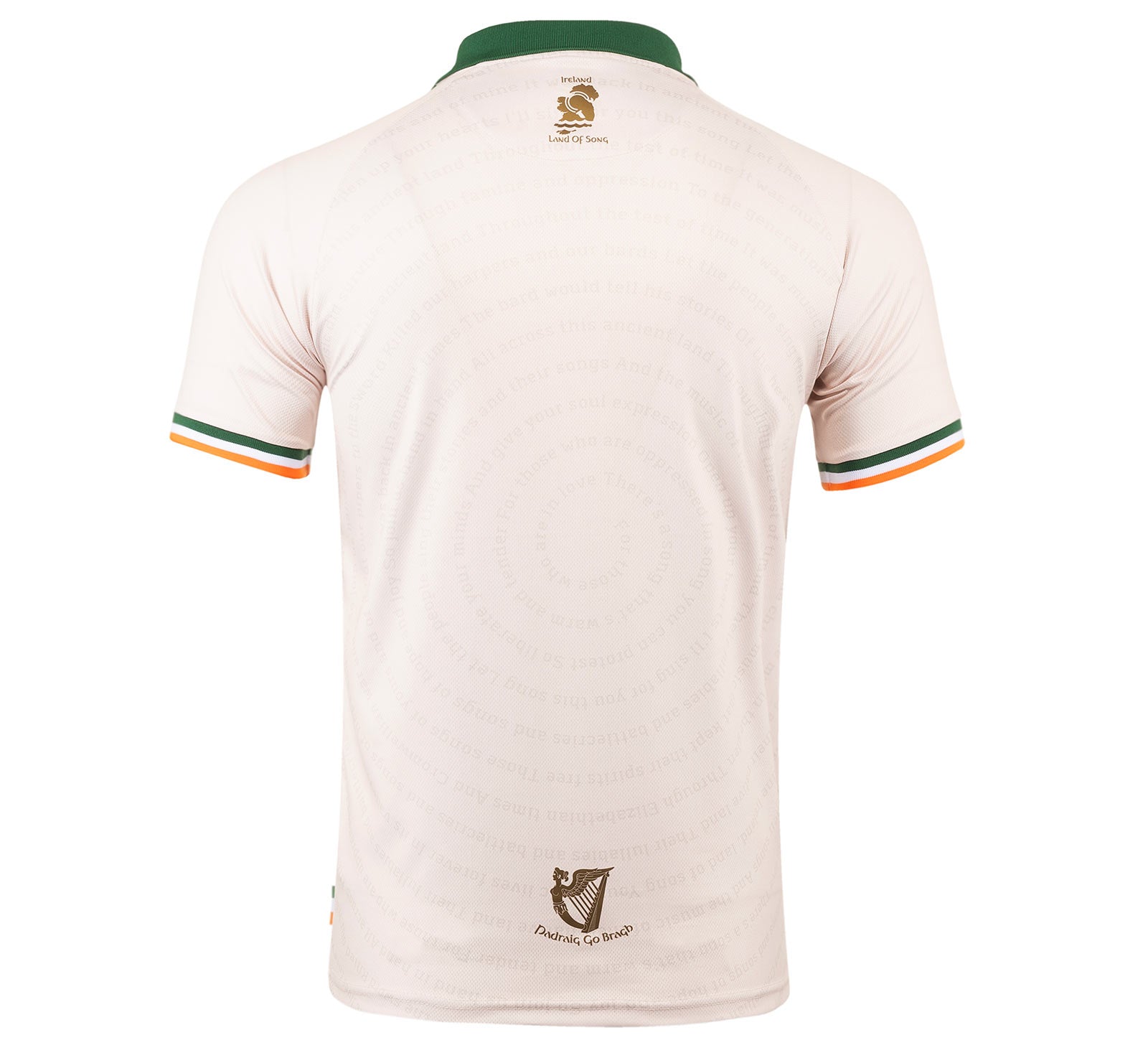 A timeless jersey silhouette reimagined with storytelling at its core. Featuring a classic V-neck collared neckline and a distinctive Ireland-inspired detailing at the cuffs, adding a refined cultural touch. The front and back panels are adorned with an intricate lyrics pattern. Designed for those who appreciate subtle detail and thoughtful design, this piece balances tradition with contemporary artistry, making it effortlessly versatile yet unmistakably unique.